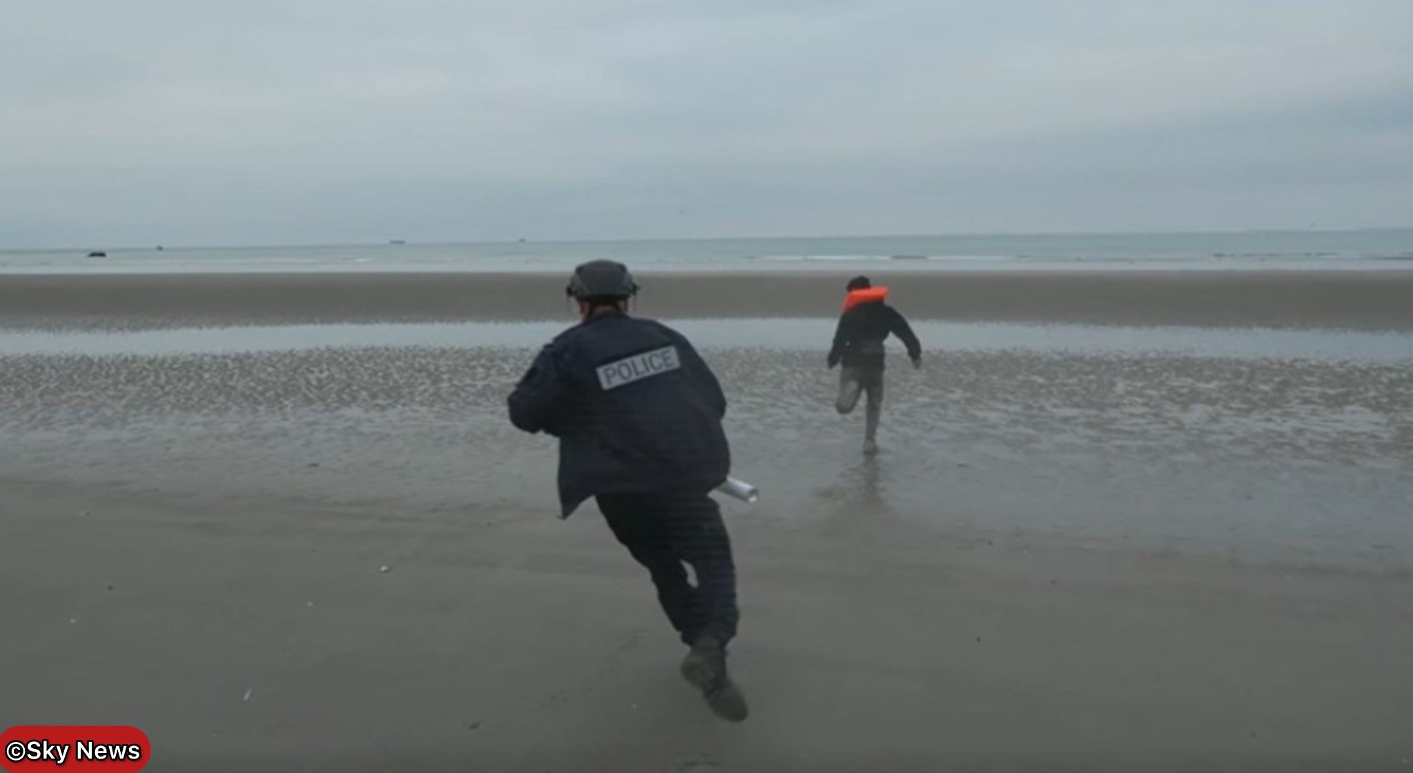 The bungling officers were captured trying to run after groups of young men in life jackets on the beach in Gravelines, northern France, in footage that highlights the ongoing struggle to control Channel crossings.
